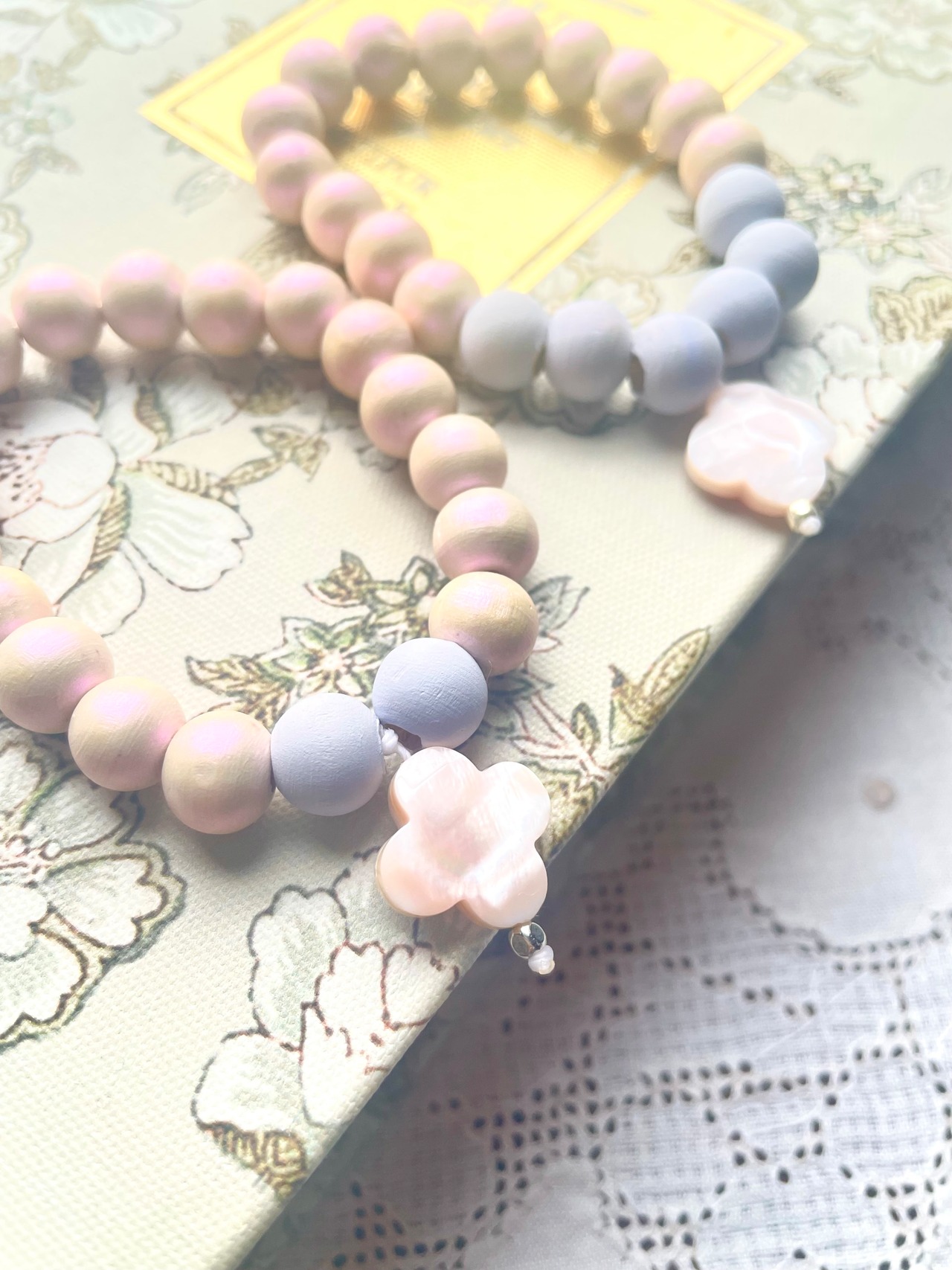 このブレスレットは、夕暮れの始まりを彷彿とさせるウッドビーズと美しいシェルビーズで織りなされた一品。自然の色合いを巧みに表現した心地よいデザインが、あなたの日常に華を添えることでしょう。