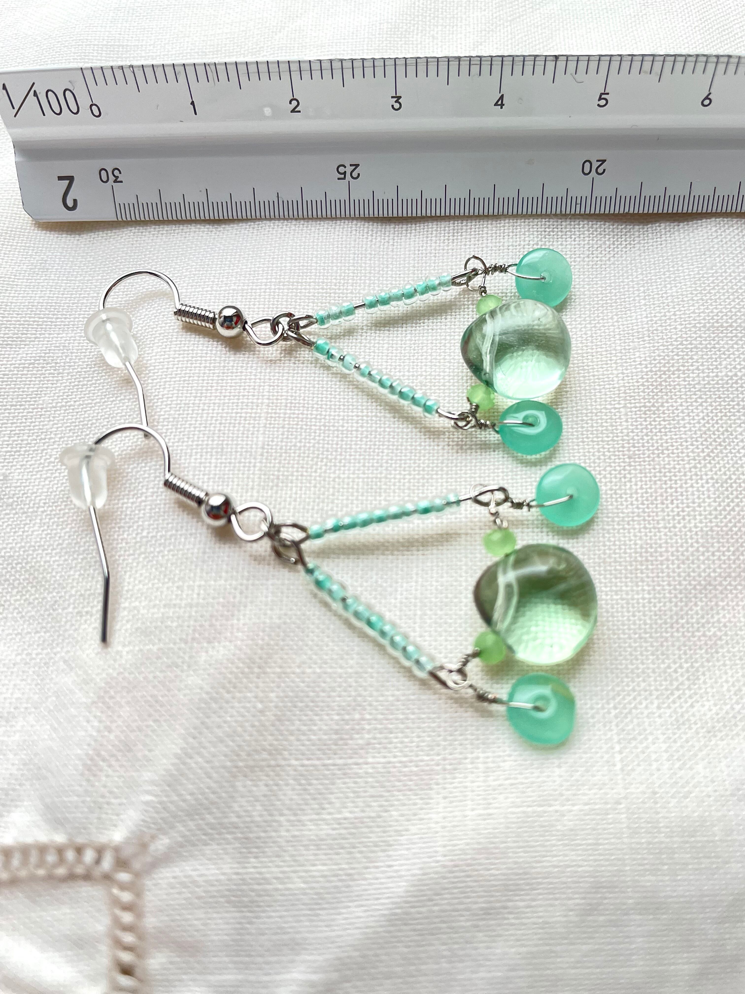 ディスクなビーズとシードビーズは、フランスアンティーク。小さなガラスビーズもmade in France. ディスクなビーズがちょっとフリンジのように揺れるイヤーアクセサリーです。