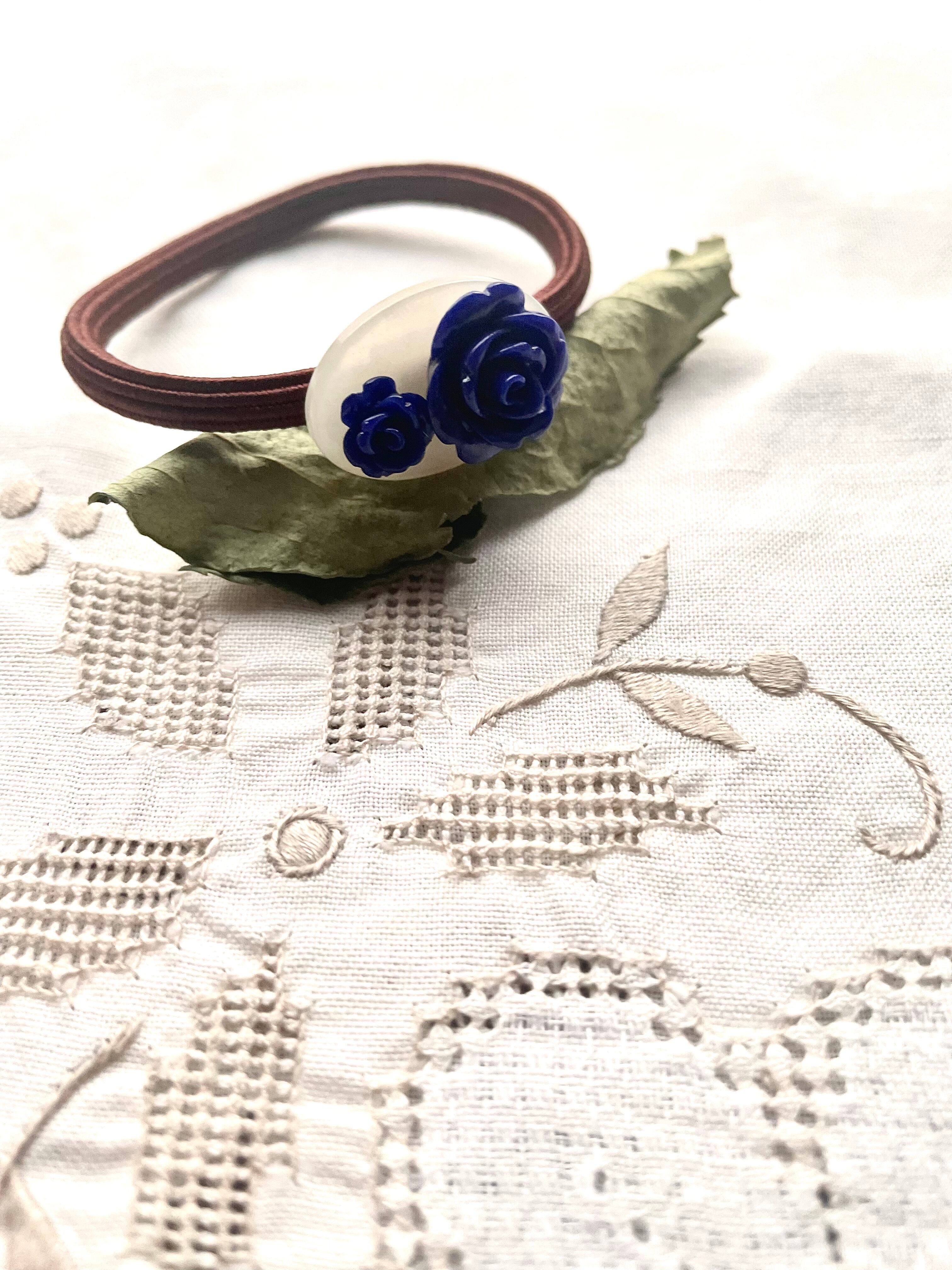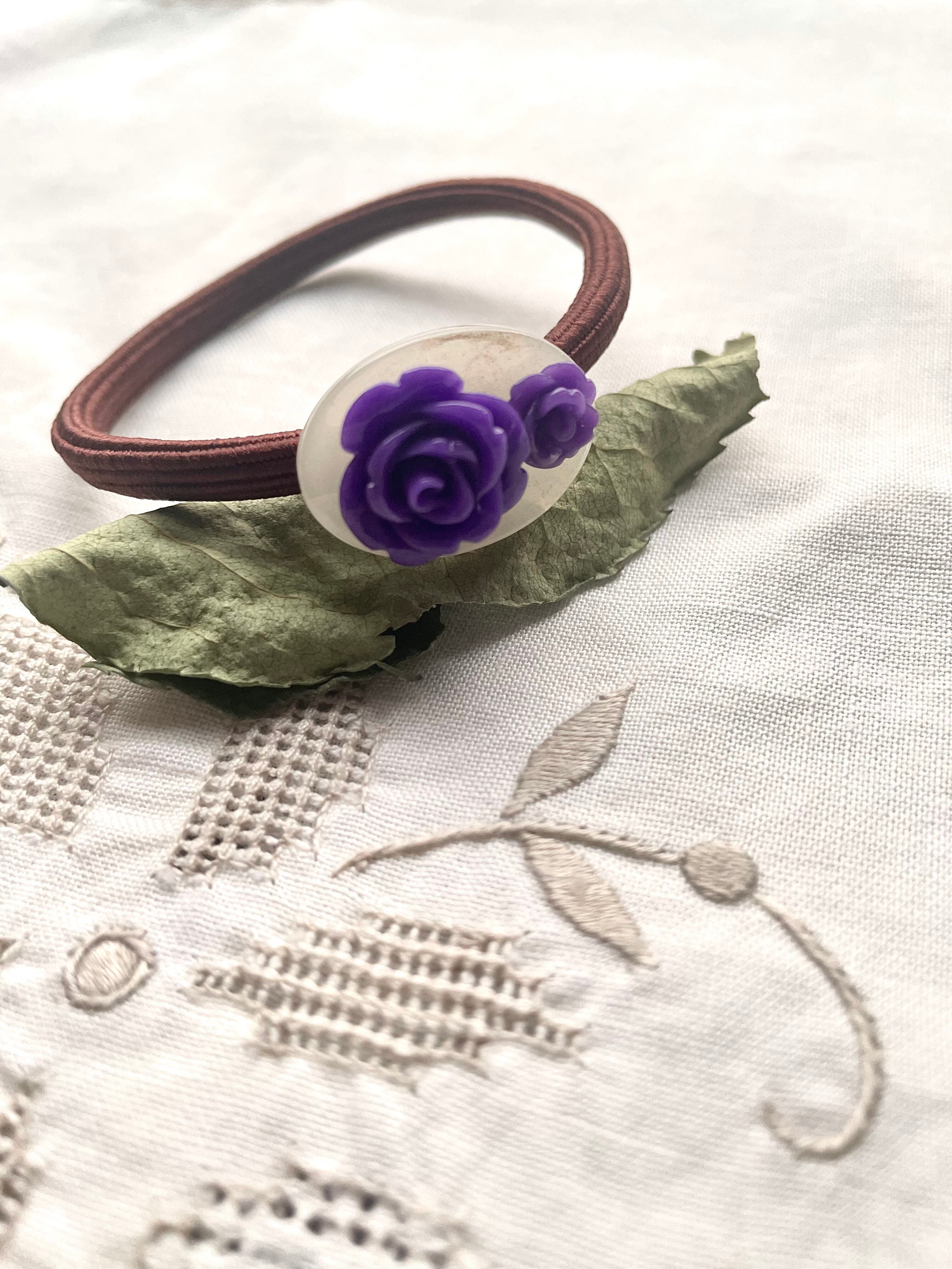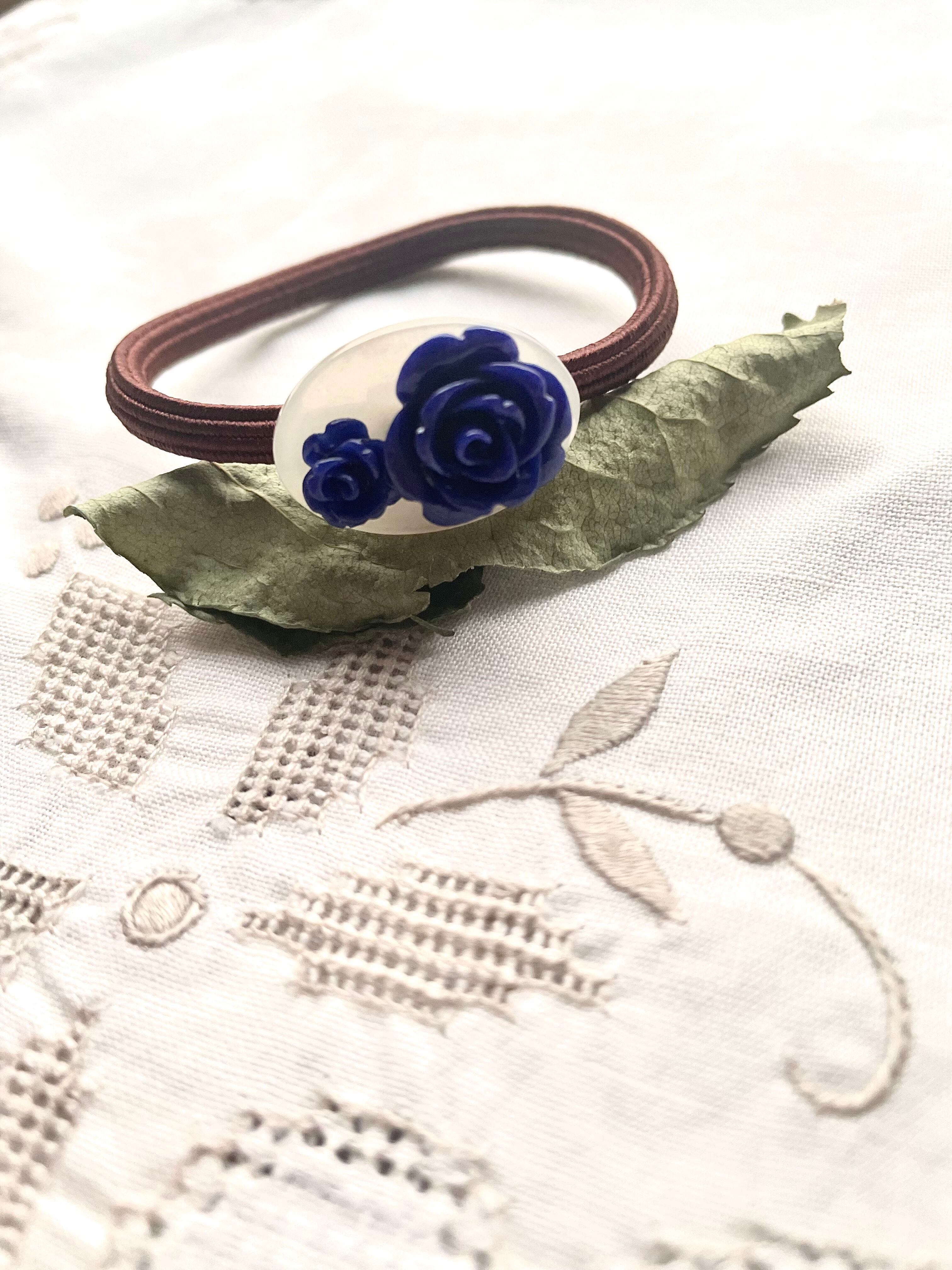 樹脂のバラは、フランス製。落ち着いたパープルとネイビー 各一点ずつのご案内です。