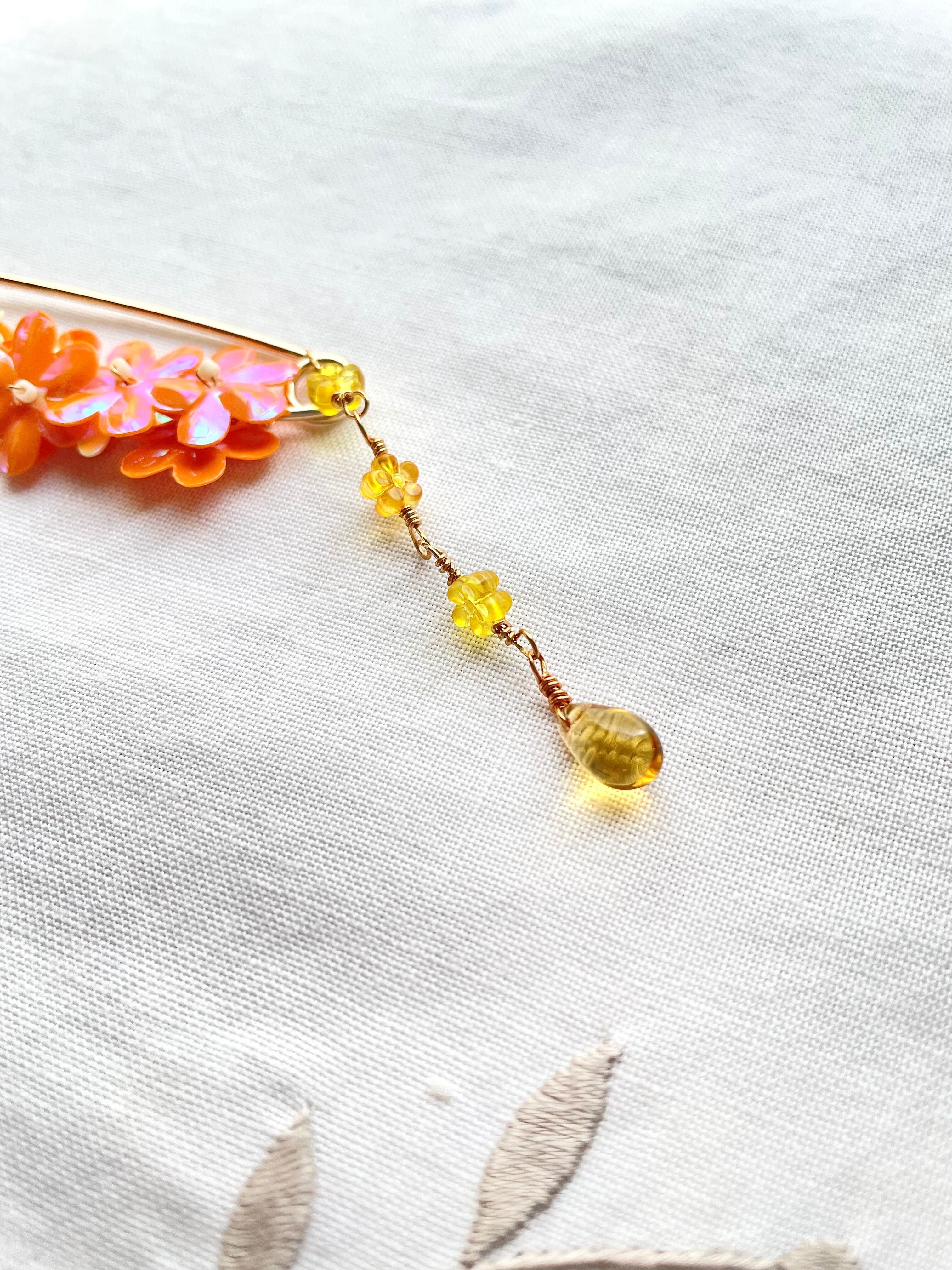 小さなお花のビーズは、オレンジとイエローを組み合わせいます。