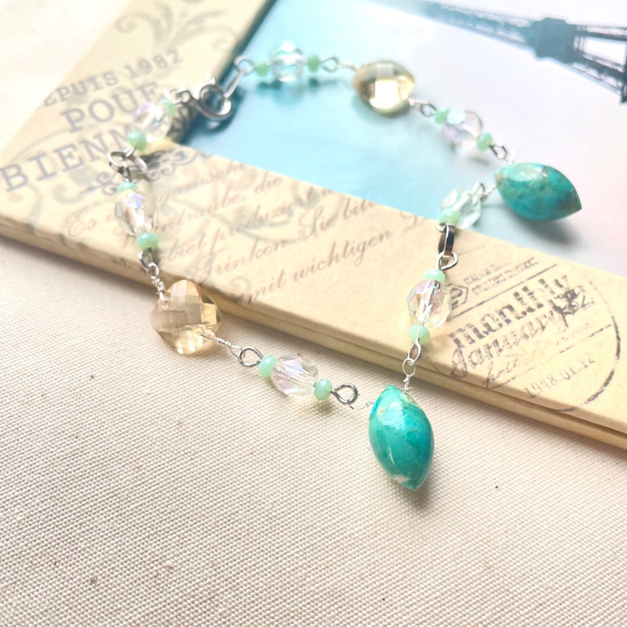 Odysséeが贈る、智慧の実と光と〜ターコイズとシトリン フランスビーズのブレスレットは、自然の恵みを感じさせる上質なジュエリーです。