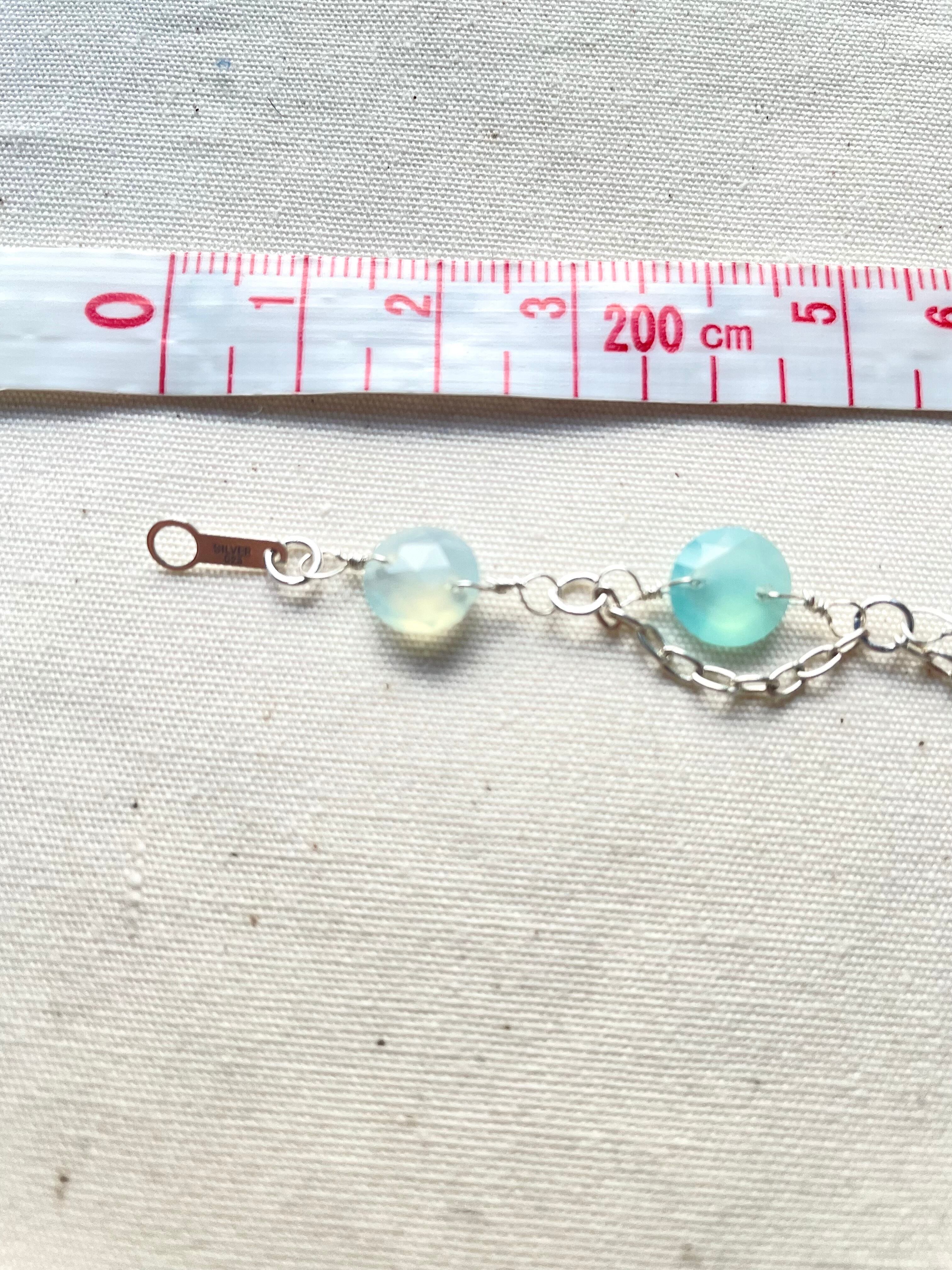 上品なミントカラーが美しいシルバー925のブレスレット。ハンドメイドで作られたこの一点物は、大切な方へのプレゼントにも最適です。 シンプルなデザインながら、繊細かつエレガントな印象を与えます。オニキスの石は、豊かな表情を持ち、付ける人の個性を引き立てます。大切な場所や思い出を思い浮かべながら身につけることで、特別な想い出がよみがえってきます。