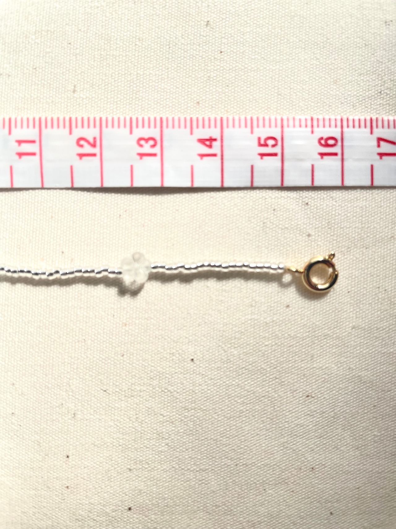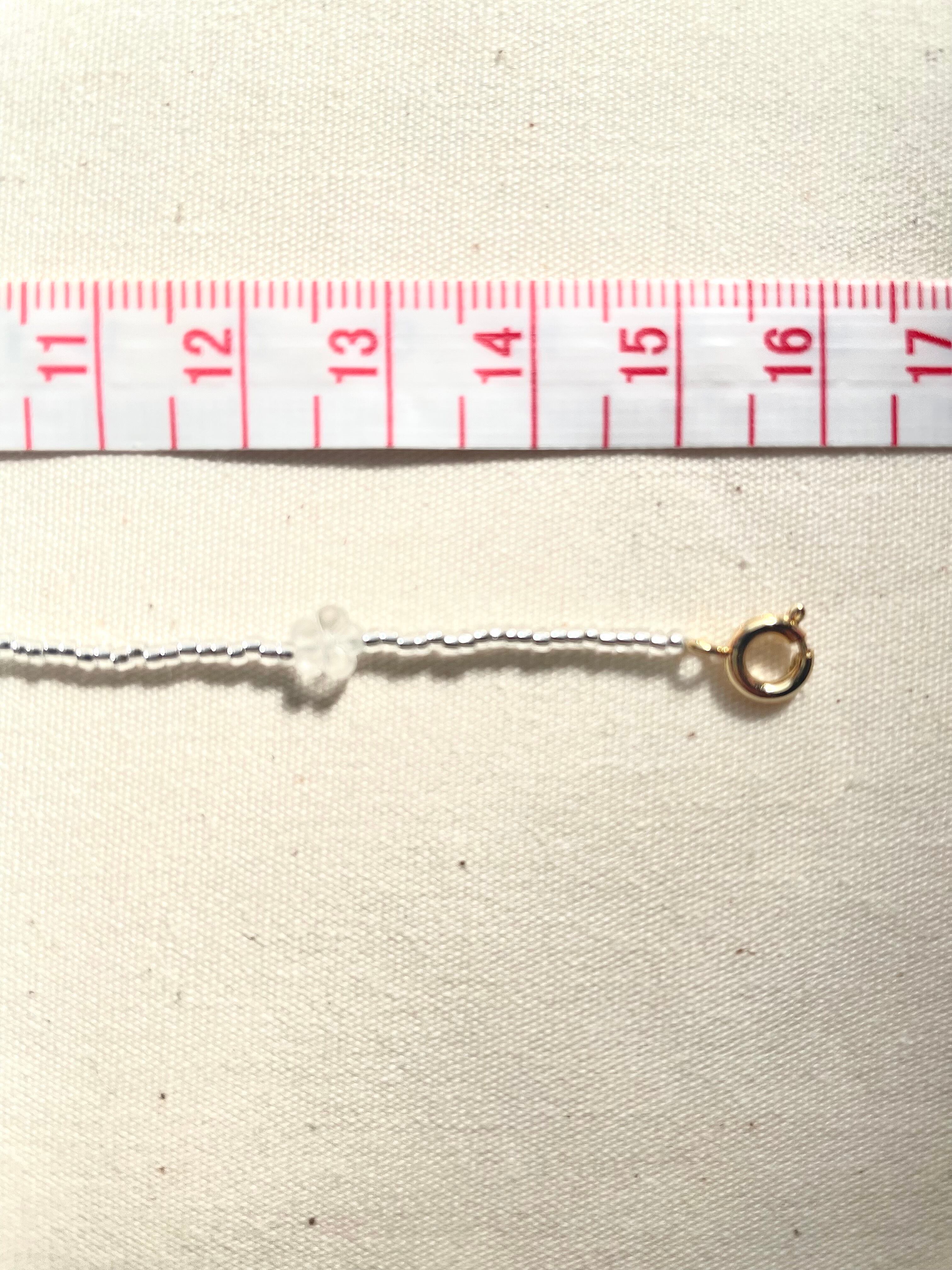 小さな涙の形をしたリュネビルビーズの、瑞々しい雰囲気をそのまま受け止めて頂きたいデザインのブレスレットです。